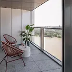 Ein Herd und ein Geschirrspüler werden in einer voll ausgestatteten Küchenzeile der Unterkunft angeboten. Die Unterkunft ist in circa 5 Gehminuten Entfernung von der Bushaltestelle Most Apollo.